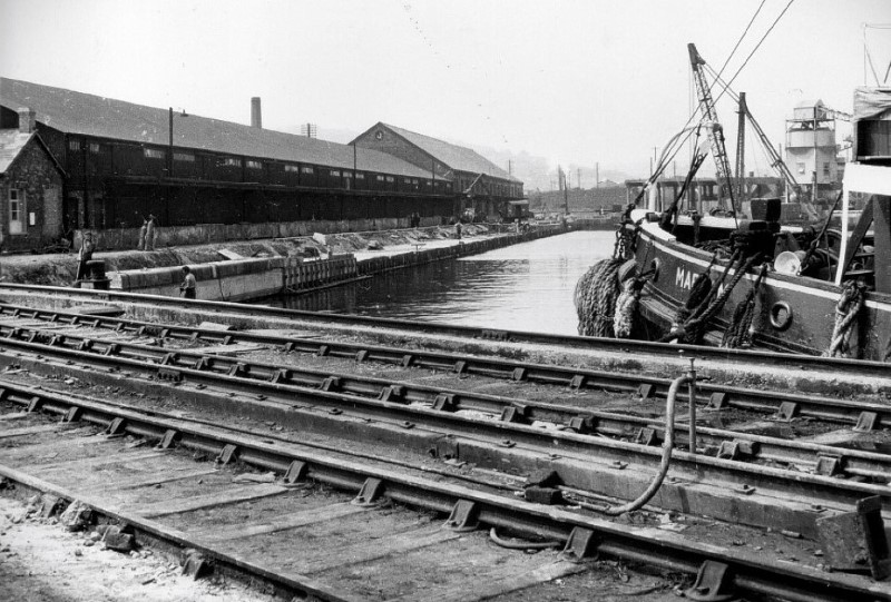 Reconstruction of West Wharf, Prince of Wales Dock, Swansea in 1959 (1)