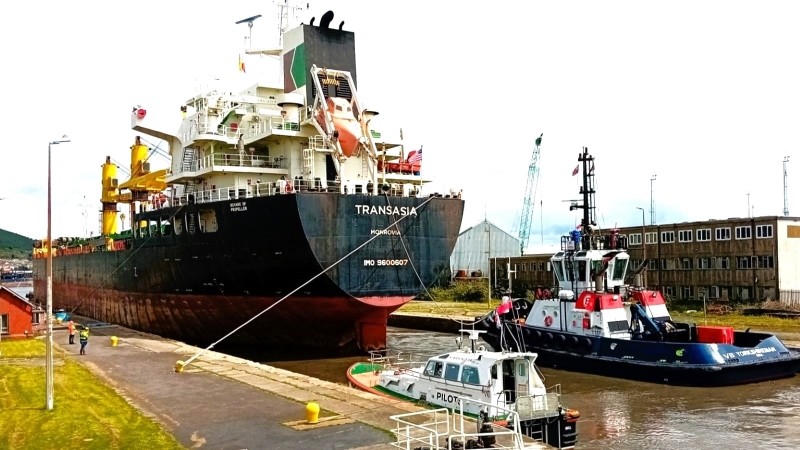 – Bulk carrier Onego Wilsa arriving at Swansea Docks to load a cargo of coal for the USA