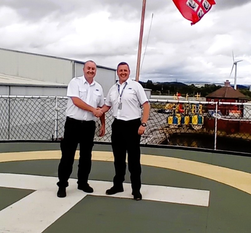 Swansea lock controller Gavin John (left) with ABP pilot Capt. James Charles, former master of THV Patricia