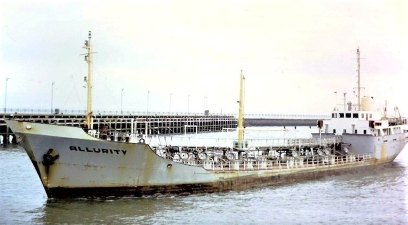 FT Everard's coastal tanker Allurity approaching Kings Dock lock, Swansea c.1975