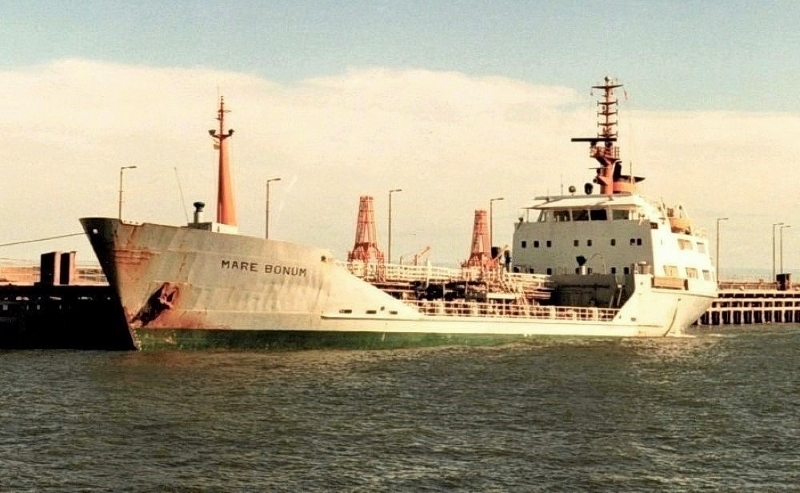 Dutch petrochemical tanker Mare Bonum on the Kings Dock lock approach jetty, Swansea c.1990