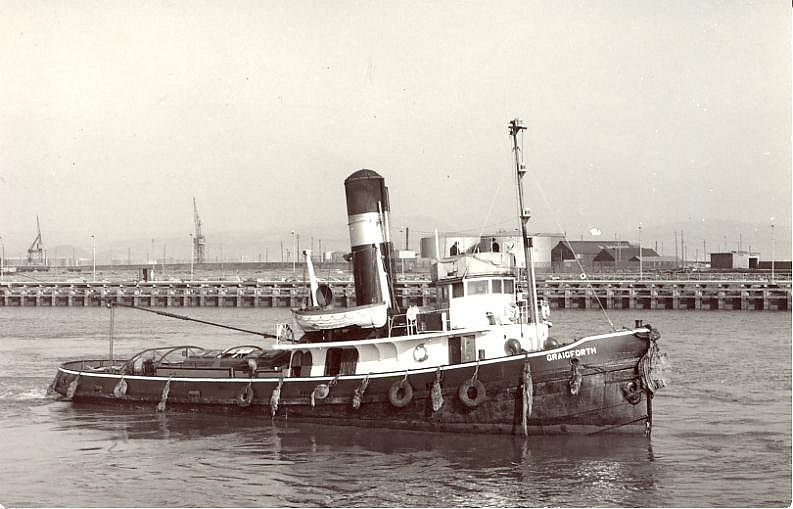 In 1934 the tug ‘Majestic’ (built by Clelands of Newcastle in 1898) was acquired by Britannia and retained as part of the fleet until 1956 when, like the ‘Queenforth’, she was sold to Rees Bros., Llanelly, for demolition. Further Britannia acquisitions were the ‘Kingforth’ in 1948 (built  in 1904 by Ferguson Bros., Glasgow, as ‘Flying Falcon’); the ‘Clyneforth’ in 1951 (built in 1943 by Scott & Sons (Bowling) Ltd., Greenock, as ‘Empire Minnow’); the ‘Brynforth’ in 1956 (built in 1942 by Richardson Ltd., Newcastle, as ‘Empire Thistle’); and finally, in 1958, the ‘Graigforth’ (built in 1923 by Philip & Son, Dartmouth, as the ‘Samson’).