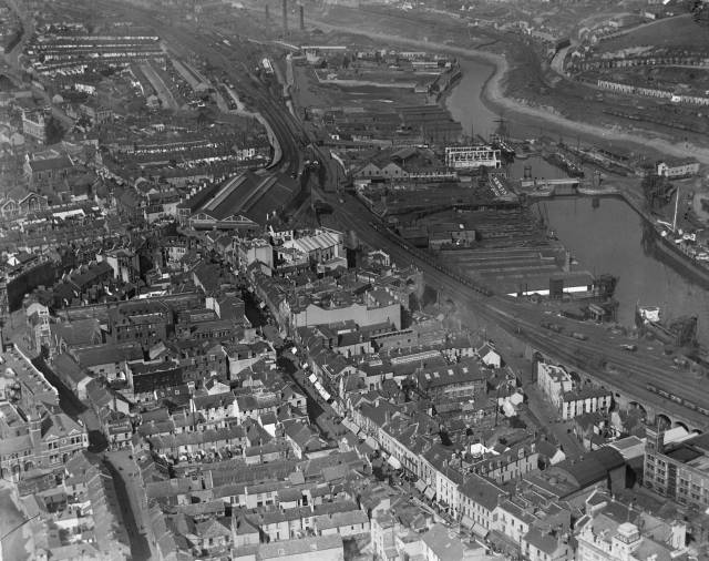 the River Tawe showing (below) North Dock Basin & South Dock Basin