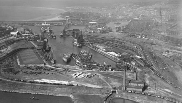 (note - tugs and a bucket dredger in the North Dock Basin)