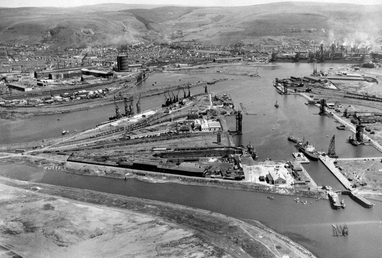 Port Talbot Dock showing ship in Dry Dock taken in 1966 during the seaman's strike. |