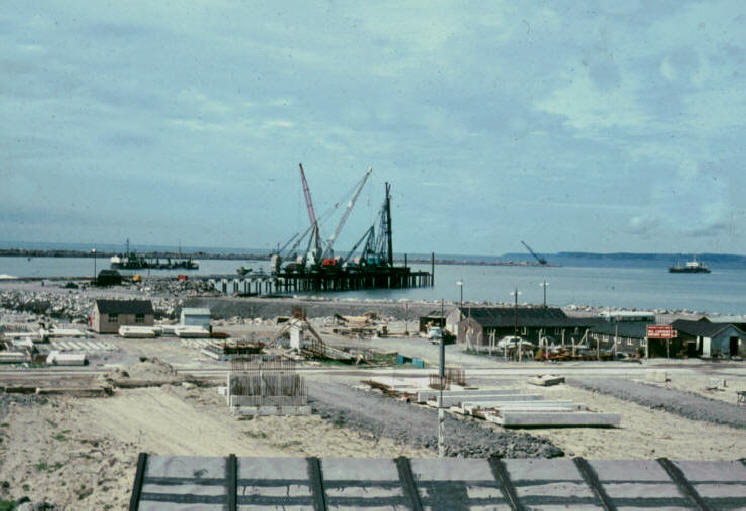 The construction of Port Talbot Tidal Harbour began in 1966 and was completed in 1970, creating the first dry-bulk terminal in the UK capable of accepting vessels of over 100,000 deadweight tonnes. The building of the breakwaters and the unloading jetty was undertaken by a consortium of Marples-Ridgway and Kier; the dredging was carried out by a consortium of K.L. Kalis and the Westminster Dredging Company, and the two original unloading appliances on the jetty were erected by Sir William Arrols.