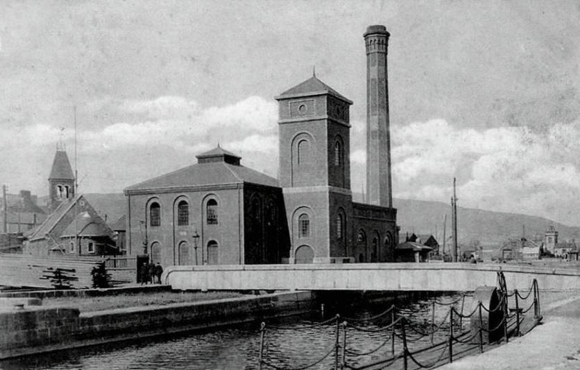 The original entrance from the river into the South Dock half-tide basin was fitted with just a single pair of dock gates, while the passage between the half-tide basin and the inner South Dock (the main lock) was fitted out with three pairs of lock gates. In 1903 a new lock entrance from the river into the half-tide basin was completed, and the half-tide basin became a fully-impounded part of the South Dock. The new entrance, which was fitted with two pairs of lock gates, meant that the original lock gates in the connecting passageway could be dispensed with. In 1901 a new impounding station was built on the north side of the lock head and, in 1905, the original swingbridge across the communicating passage was replaced by a more substantial structure, which can be seen in later photographs.