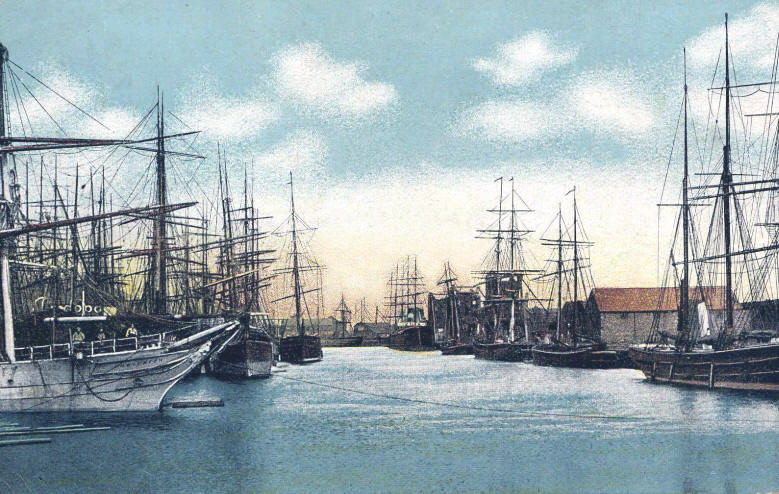 The South Dock handled commercial shipping for well over a century, and was famous for its thriving fishmarket, which was established in 1905, and for the export of coal. At one time there had been eleven coal-shipping appliances in the main dock area, although this number had fallen to just four by the mid 1930s. Other cargoes included iron ore, timber, sand & gravel, and potatoes. Sadly, a general decline in trade lead to the closure of the South Dock in 1971 but, within a few years, it had been acquired by the City Council and was being developed as the Marina we see today.