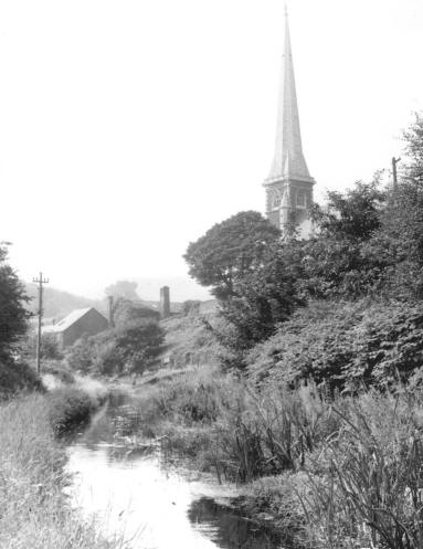 Canal looking towards Pontardawe with St Peters Church on the right. |