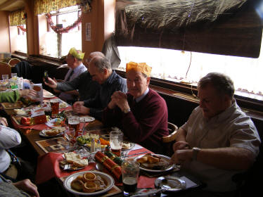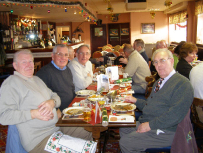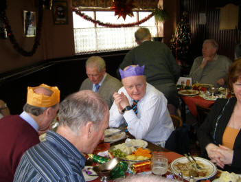 Christmas 1999 at the Cape Horner. Left to right :- Viv Howells, Graham Green, Ivor Lewis, Peter Lodwig, Jill Holding, Terry Duff and Brian Davies.