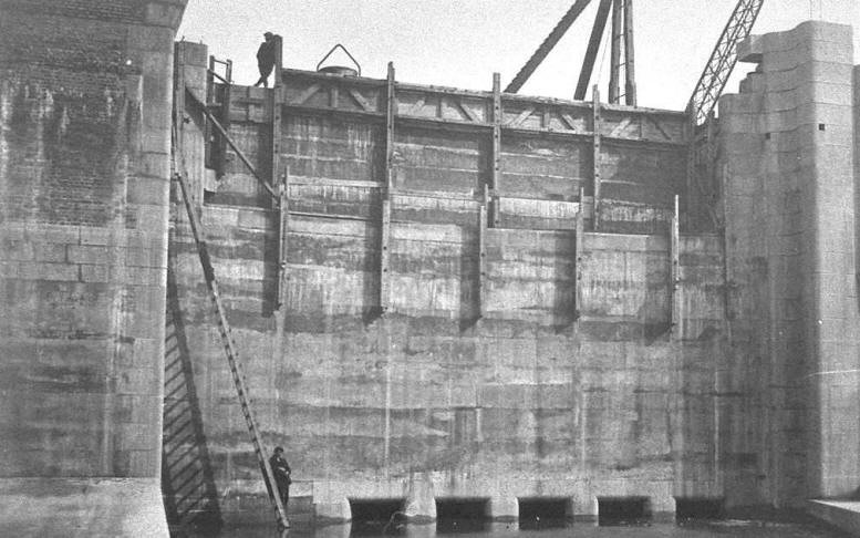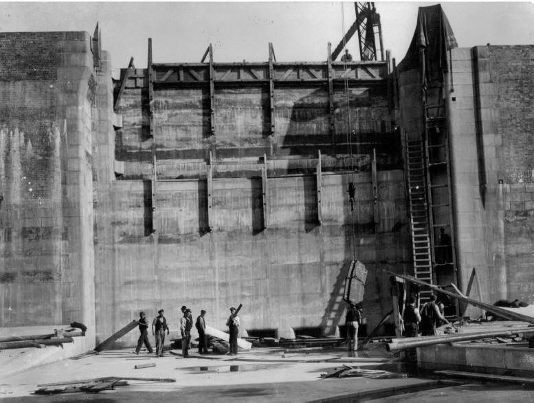 laying the concrete floor of the lock