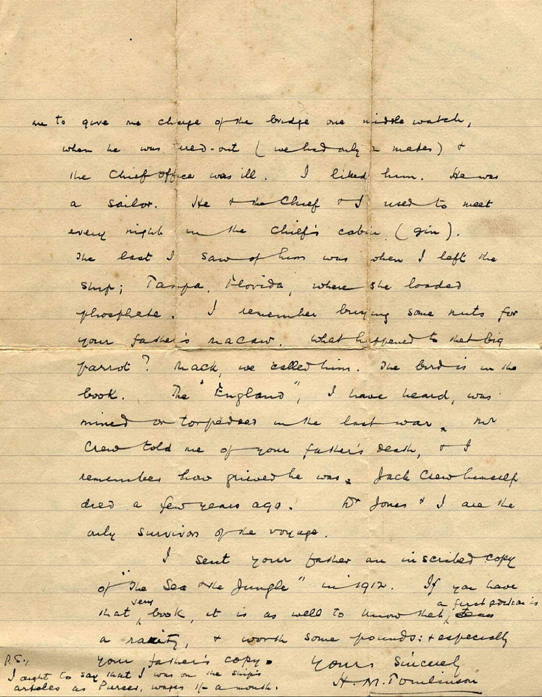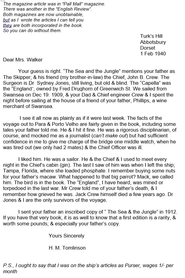 Transcription of Tomlinson's letter: