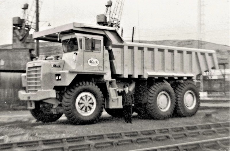 Dock Foreman Albert Palmer with 45-ton Mack truck from USA discharged from m.v. Coventry City - 1967