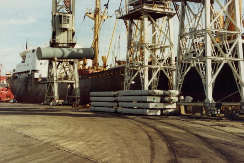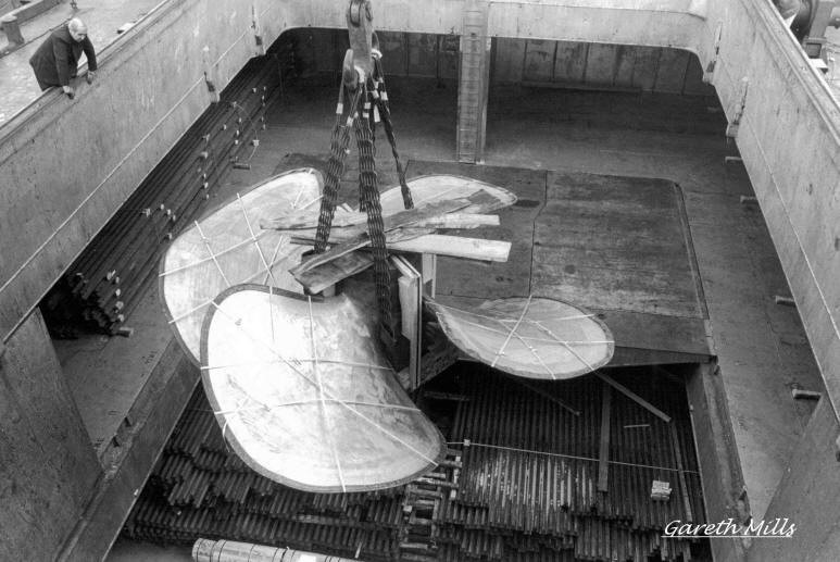 13 Ton propeller for aircraft carrier H M S Hermes loaded aboard the mv Tara in 1987