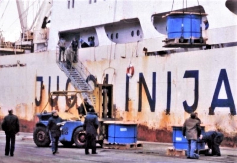 Loading tinplate for Bombay – m.v. Jalakendra, A Shed Wharf c.1975