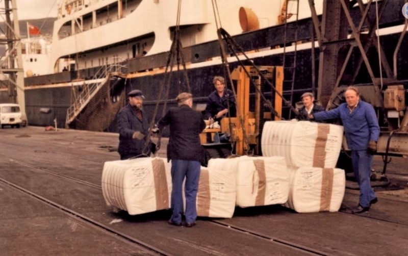 Discharging cotton bales from India – m.v. Jalakendra, A Shed Wharf c.1975