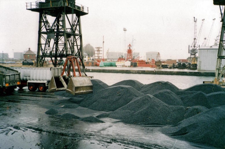 Receiving coal by lorry at 4 Quay Wharf for shipping