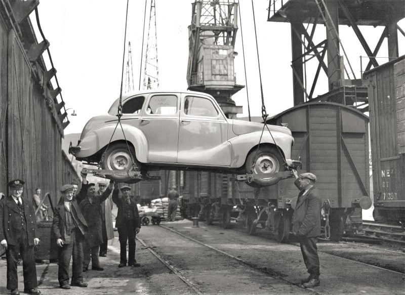 Loading Austin 12-4 Ascot Saloon for export to Japan - 1930s