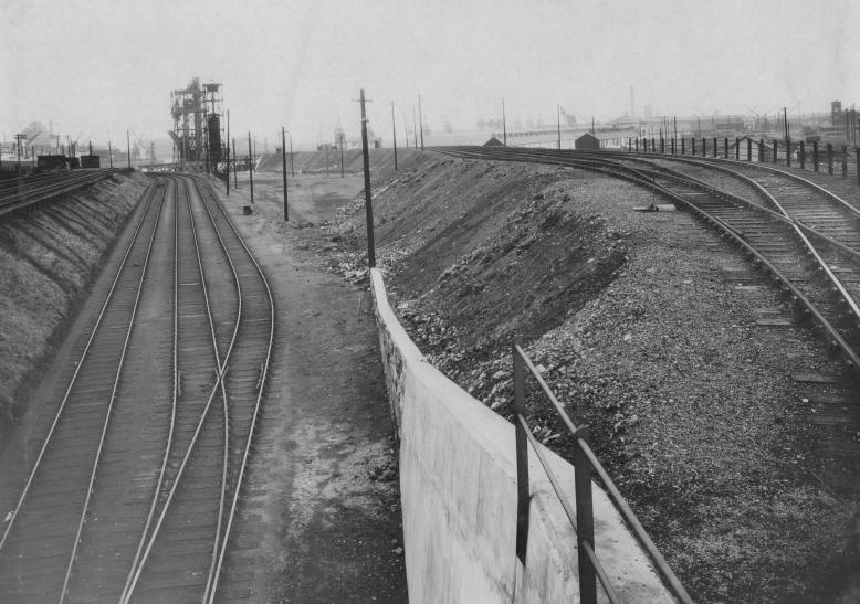 View from the Burrows Rail Bridge looking towards number 11 Hoist in 1934. Lamberts Row can be seen on the top right.