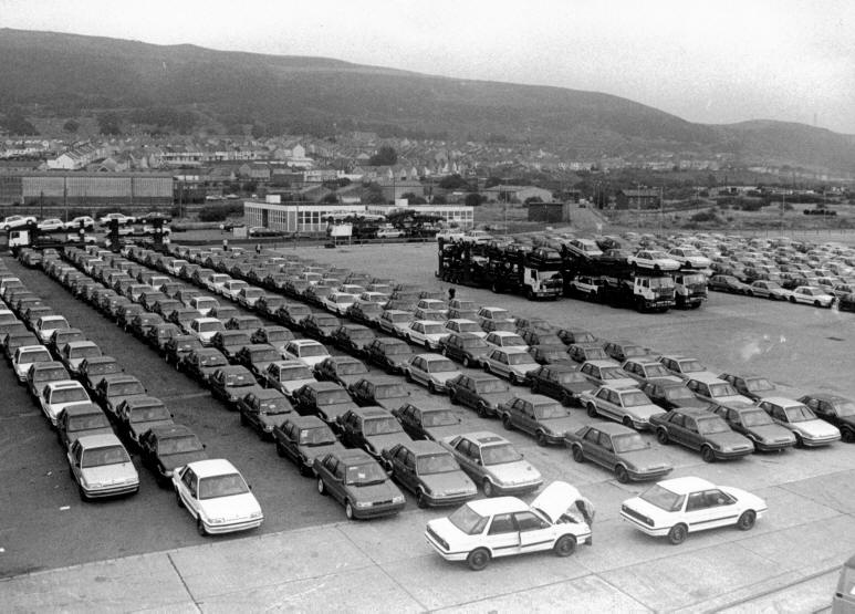 Cars waiting to be shipped to Spain at D Shed Wharf 1989