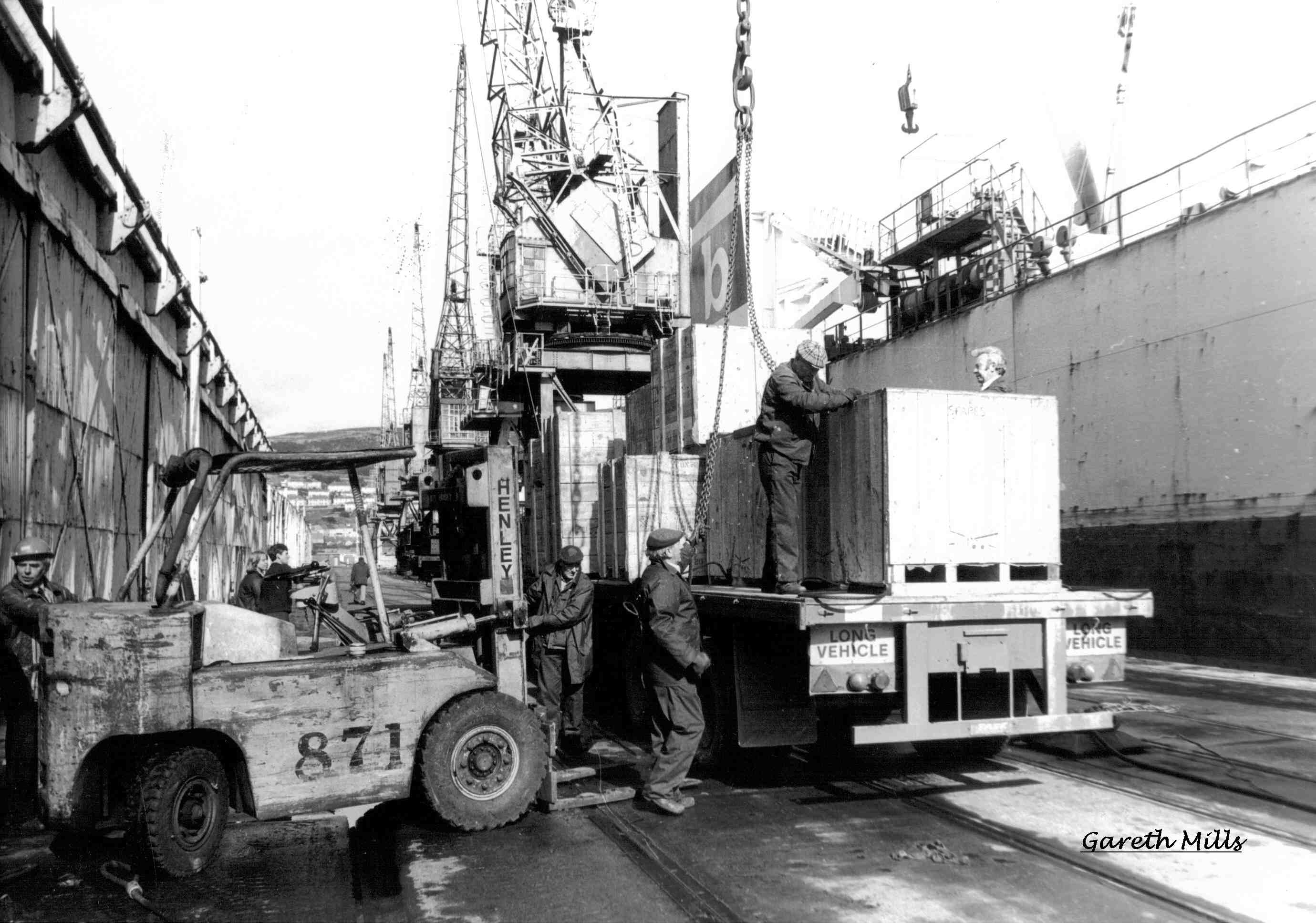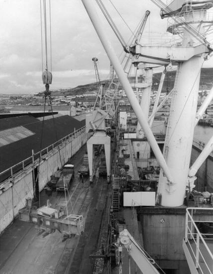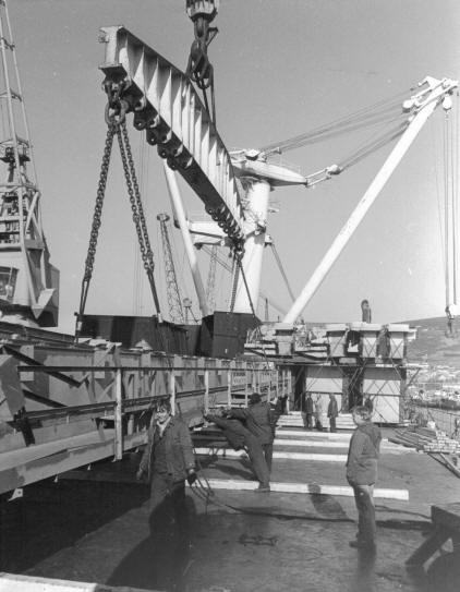Loading the machinery of the Duport Steel Works aboard the mv Project Orient to ship to Southern Africa