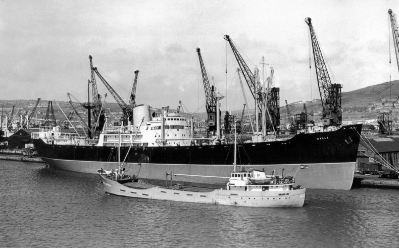 mv Dalla on D Shed Wharf in 1961. Passing