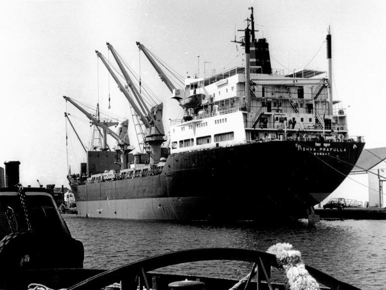 mv Vishva Prafulla loading tinplate at A Shed 1990