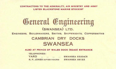 Roger Phillips Jones’ father, George Phillips Jones, founded General Engineering & Electric Welding (Swansea) Ltd., known to all as “Georgie Jones’s”, and Roger has kindly provided the following information on his father’s company, together with some interesting photographs.