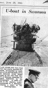 On the morning of June 20th, 1945, barely 6 weeks after the end of WW2, a surrendered German U-boat U 1023 tied up at the entrance to Swansea Docks, awaiting the morning tide, prior to berthing in the North Dock basin, where she would be open to the public for 3 days |