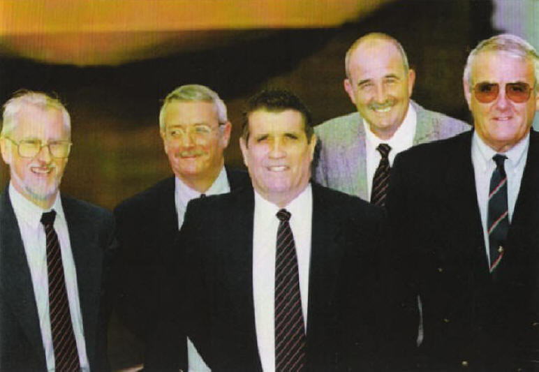 This photo was taken in Hamburg in May 1981 on board the tug Hendon, where we were to tow a brand new floating crane to Port Suez. The job was eventually aborted due to financial wranglings.The crew are.....Back Row Myself, Capt. Frank Heslop, Clifford Hughes, Gordon Harris, (all have since crossed the bar) Front Row.....Mike Arthurs, John Blackmore, Jack Gunshon. |