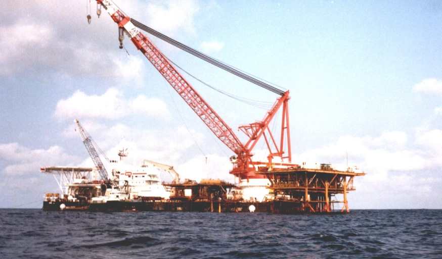 After a few days alongside in Douala we proceeded south to rendezvous with the French crane barge BOS 400. Our main task was anchor handling, along with any other tasks that occurred. The BOS 400 was a fairly new vessel , a combined crane and lay barge, used in the construction of oil platforms and the vessel was capable of lifting 1,000 tons and was owned by Bouyges Offshore, a subsidiary company of ELF, the French state owned petroleum company.