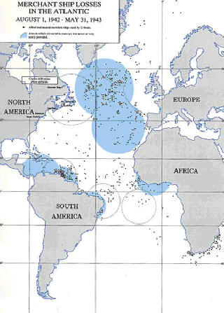 The year of 1942 was, in maritime terms, probably the most disastrous in World War 2, with the allied Merchant Navies suffering losses of 7,790,697 tons, 1664 ships. Of these, 1,006 ships, totalling 5,471,222tons, were lost in the Atlantic alone.
