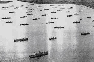 A typical convoy assembled in Halifax Nova Scotia prior to departure.