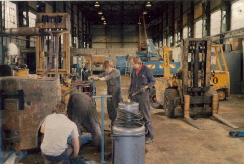 As technology improved, the engineers of the day sought to develop even more efficient dockside handling equipment, and the answer lay in the use of water pressure, or hydraulic power. By setting up power stations with large steam engines driving hydraulic pumps, many quayside appliances could be operated from the same power source. At Swansea Docks, for example, a number of inter-connected hydraulic power stations made possible the operation of cranes, road and rail swing-bridges and drawbridges, coal hoists, capstans, lock gates and other fixed mechanical appliances throughout the dock estate. The hydraulic system required a lot of maintenance, however, and a large number of men were employed to carry out the day to day repairs necessary to keep the equipment operational. The job of Hydraulic Repairer had come into being. Along with fitters, blacksmiths, boilermakers, carpenters and later, electricians, they formed the engineering maintenance section of Swansea Docks.