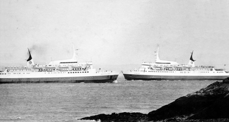 Pictured in 1990 leaving Swansea Ferryport is the Strintzis Line ferry ‘Ionian Sun’, on charter to Swansea Cork Ferries. Built as the ‘Leinster’ for B&I Line’s Liverpool-Dublin service, she was later renamed the ‘Inisfallen’, but should not be confused with her sister ship, the original ‘Inisfallen’ which was built for B&I’s Swansea-Cork service which commenced in 1969. (Photo - Matthew Punter)