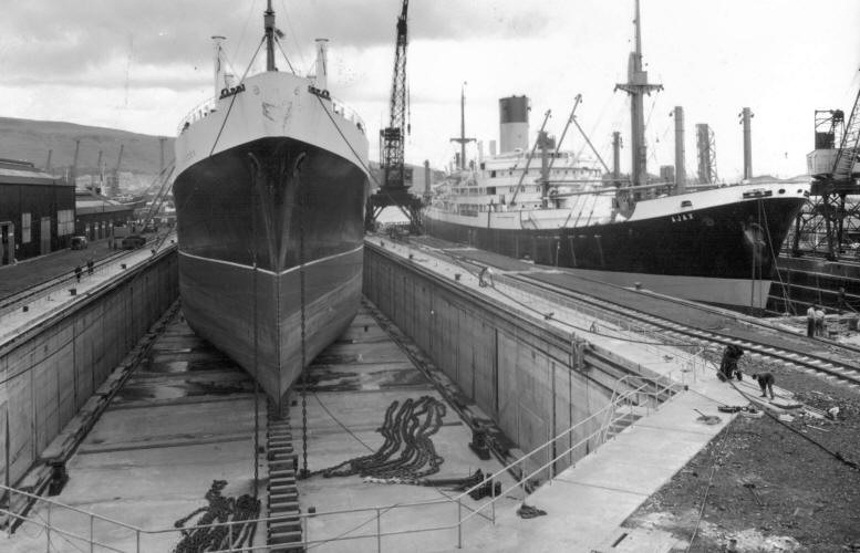 Blue Funnel ship Ajax in Palmers Dry Dock