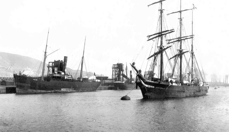 ss Racine at No 3 Hoist and the sv Charles Bal on mooring buoy - 1900