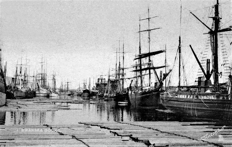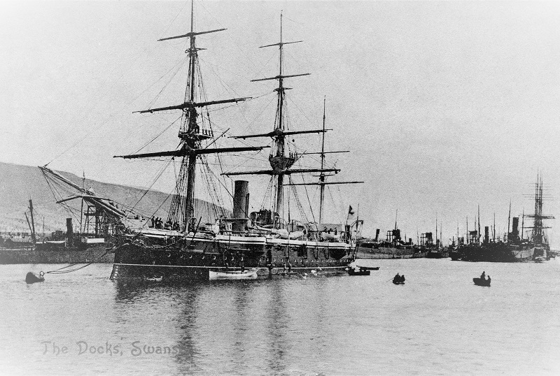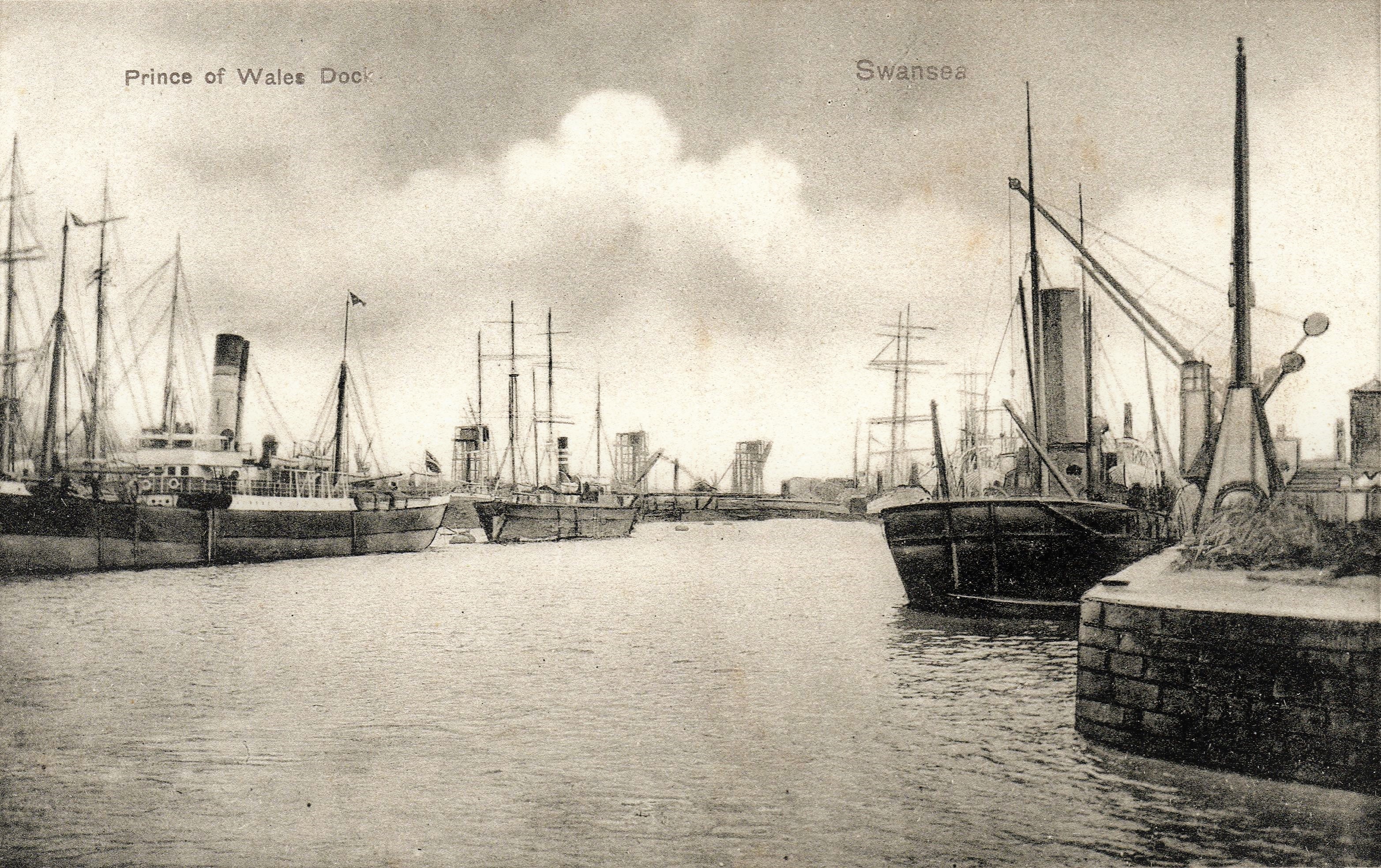 Blue Funnel steamship Glaucus in the Prince of Wales dock in 1898. Glaucus was the first Blue Funnel ship to visit the Port of Swansea. (photo courtesy of Paul Smith)