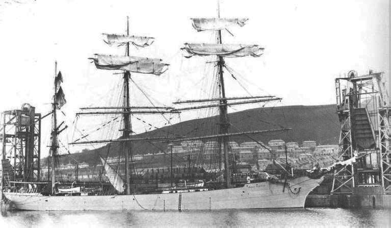 The Malcolm Miller berthed in the Prince of Wales Dock. In the background is the main stores building.