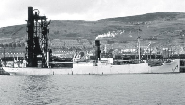 Unidentified vessel at the coal hoists, with the houses of Port Tennant in the background the early 60s