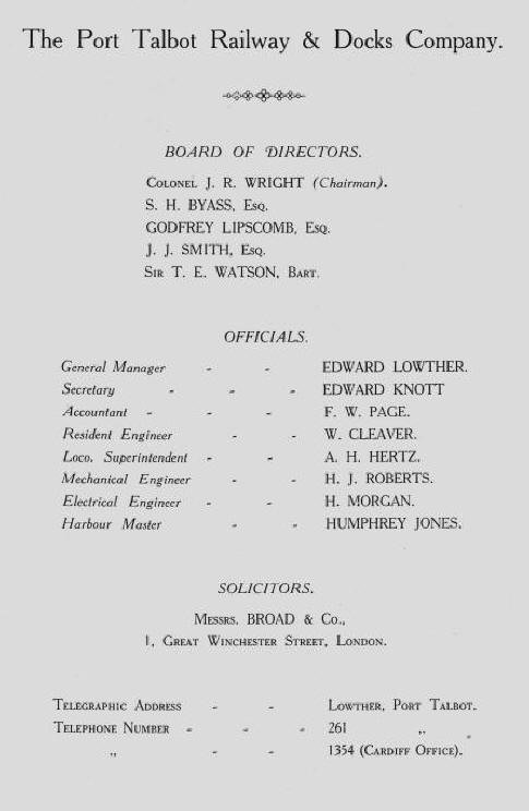 In accordance with the Railways Act 1921, the Port Talbot Railway & Dock Company was taken over by the Great Western Railway Company on 1st January 1923, although the transfer was considered to have been effected as from 1st January 1922. The port remained under the ownership of the GWR until the passing of the Transport Act of 1947 when, in common with other railway-owned docks, Port Talbot was transferred into public ownership under the control of the British Transport Commission. On the dissolution of the Commission in 1963 the responsibility for the port was vested in the British Transport Docks Board, which was succeeded by the present administrative authority, Associated British Ports, on 31st December 1982.