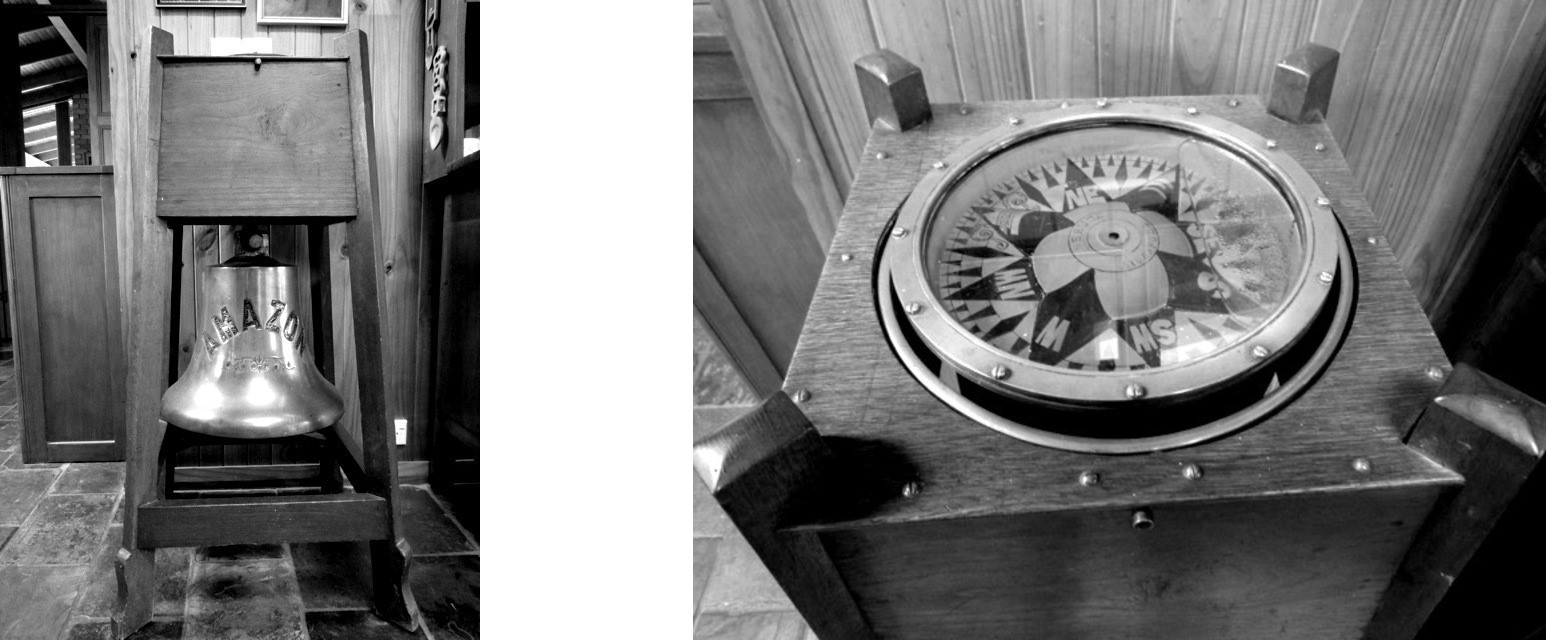 Above are photos of the ship's bell and compass in a purpose made wooden cabinet. The Amazon's bell and compass were given to Francis George Knott who was Secretary to the Port Talbot Pilotage Authority and are now in the ownership of his daughter, living in Tasmania.