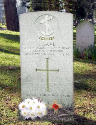 The frigate ‘Chebogue’ of the Royal Canadian Navy was part of a westbound Atlantic convoy escort when, on the 4th October 1944, she broke off to attack an enemy submarine (U-1227) and was, in turn, hit by one of the U-Boat’s torpedoes. After taking off all casualties and leaving 42 men aboard, she was towed to Mumbles by the tug ‘Earner’, arriving there on the 11th Oct 1944