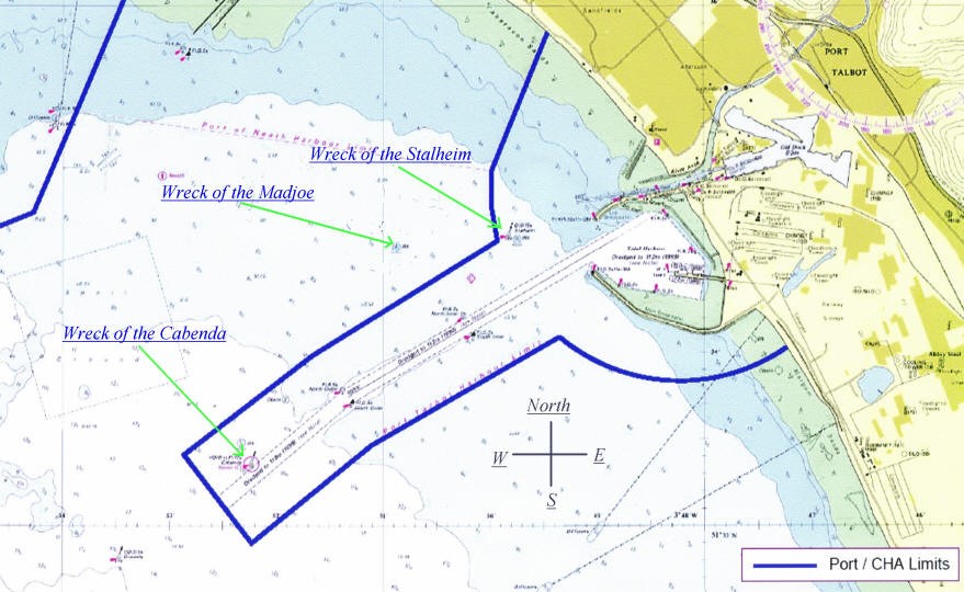 To this day the wreck of the ‘Cabenda’ remains a potential hazard to ships entering Port Talbot Tidal Harbour, and its location is marked by a Cardinal buoy.