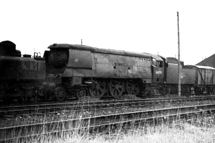 SR Bullied "West Country" or "WC" Class 4-6-2 No.34099 "Lynmouth", withdrawn at Swansea (East Dock) and awaiting being moved to Bird's Morriston scrapyard,