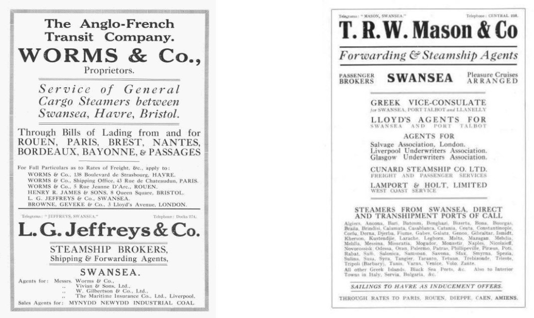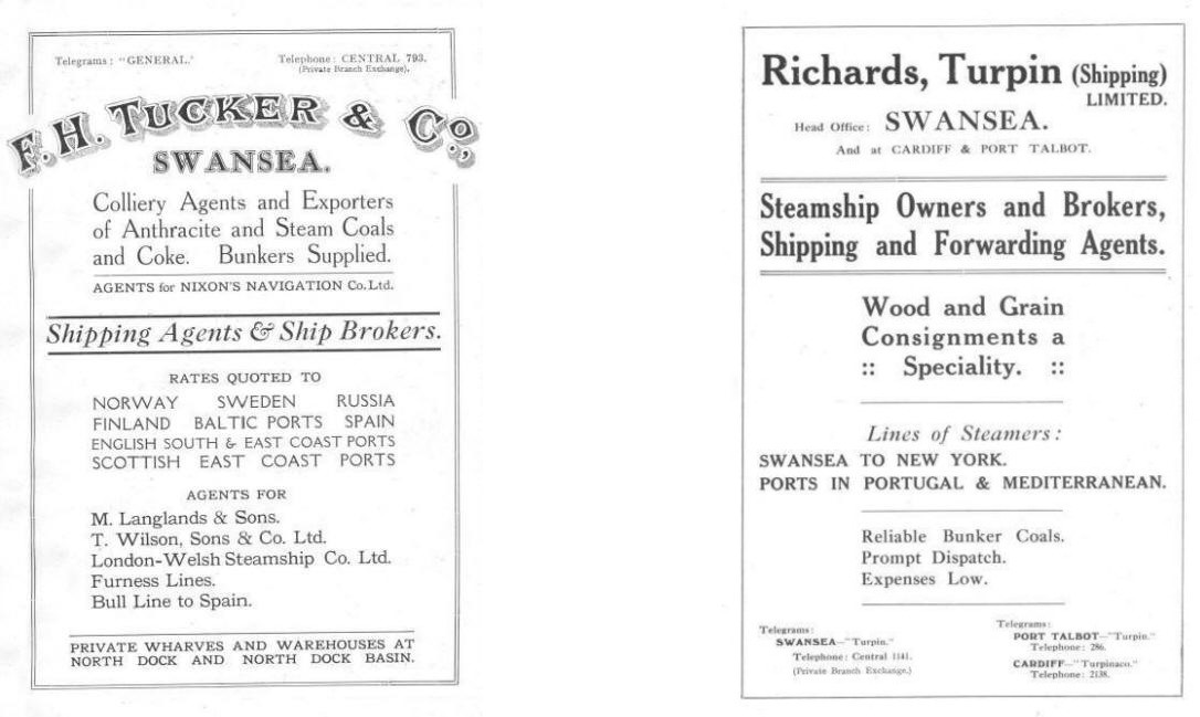 Some interesting old advertisements for various shipping agents at Swansea over the years are shown below.