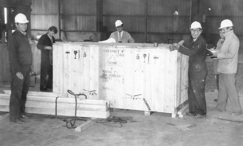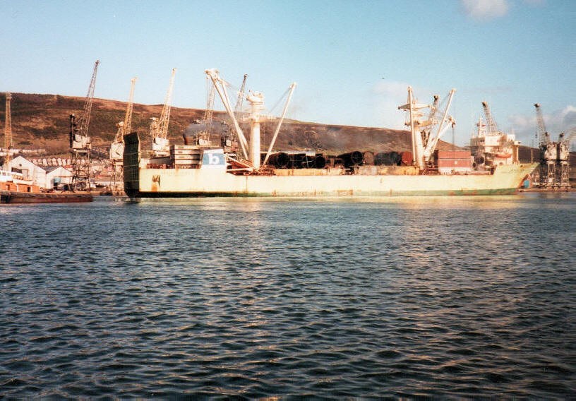 The largest single cargo ever to be handled by Escombe at Swansea was the shipment of an entire steel mill to Southern Africa in the 1980s. The Duport Steel Mill in Llanelli was stripped down, labelled and shipped out of Swansea Docks aboard the m.v. ‘Project Orient’. Peter Harris was on the Duport site for the whole of the dismantling process, recording the dimension and weight of every single constituent part of the steel plant prior to shipment, and has kindly provided us with the following photos:-
