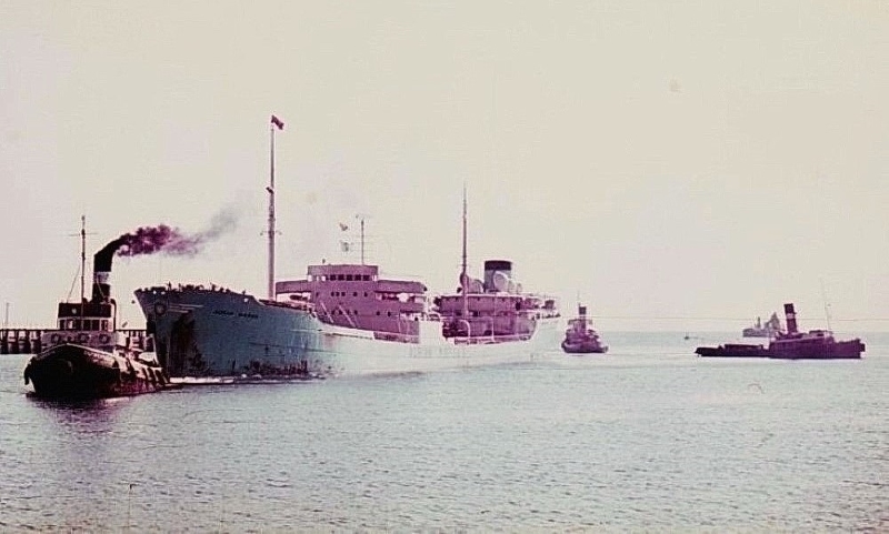 British Vine departing Swansea assisted by tug Waterloo c.1965