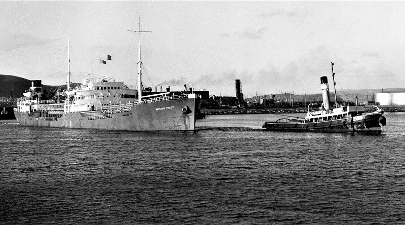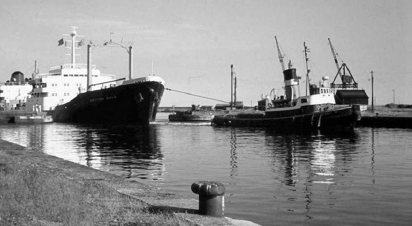 BP tanker British Seafarer entering Swansea Docks assisted by ATC tug Alexandra – 1968