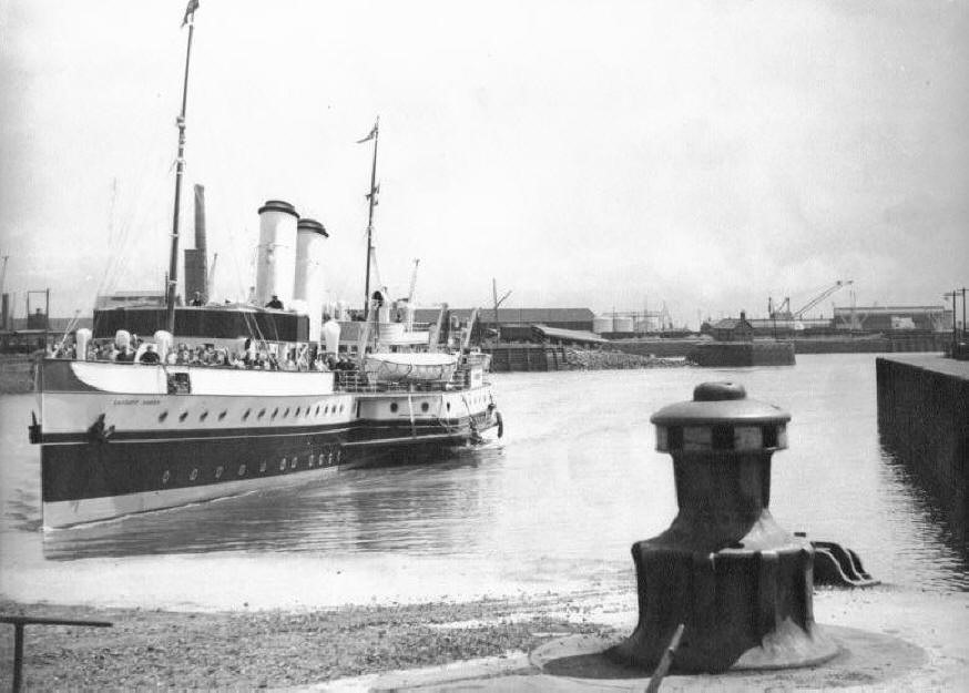 Following the demise of Pockett’s, P & A Campbell took on the role of providing excursions between Swansea and Ilfracombe, beginning with the paddle steamer ‘Glen Gower’ in 1922. Also included were occasional trips to Porthcawl, Minehead, Lynmouth, Tenby, Lundy, Clovelly and Bideford, together with evening cruises around the Gower Peninsula. The ‘Glen Gower’, as with later White Funnel steamers, would berth in the River Tawe, at either Pockett’s Wharf or the South Dock Jetty.